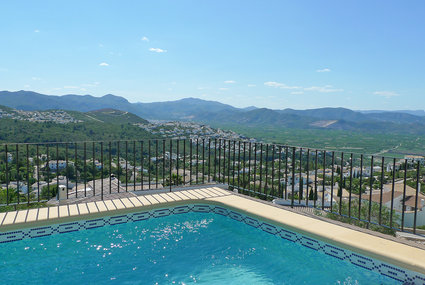 Large house "El Verger", 2 storeys. In the district of Monte Pego, in a quiet, elevated position on a slope, 8 km from the sea. Private: orchard, swimming pool angular (8 x 4 m, 01.01.-31.12.) with internal staircase. Outdoor shower, roofed, parking on the premises. Shop 6 km, supermarket 6 km, shopping centre 12 km, restaurant 1 km, bar 1 km, sandy beach 8 km. Golf course 12 km, tennis 1 km.Availability