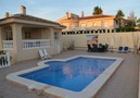 This detached villa with private pool has all the ingredients for a successful holiday. The villa has at both sides, the front and back, a nice covered patio, so you can always find a spot in the sun or shade. At the rear is a large private swimming pool with diving board and a large sun terrace around it. Here you can lay on one of the loungers and enjoy the Spanish sun. The spacious living room, with a TV, stereo, DVD player and CVR, adjoins the fully equipped kitchen. Here are a microwave/grill, a fridge/freezer and a dishwasher provided for example. From out of the dining area you have access to the terrace in the back yard where you can prepare lovely meals with the gas grill. There are four bedrooms. The bathrooms have a shower, toilet and basin. Of course there is also a washing machine in a separete laundry room. The entire upper floor is air conditioned.