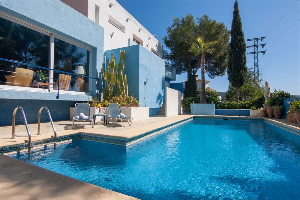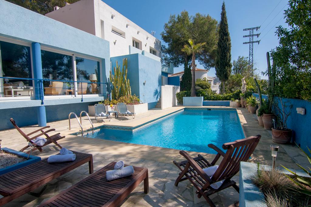 Modern and comfortable villa with private pool in Teulada, on the Costa Blanca, Spain for 8 persons. The villa is situated in a hilly, wooded and residential area and at 3 km from Playa El Portet beach.