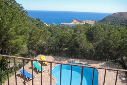 Aiguafreda: Beautiful house "La Gervaise", 2 storeys. 4.1 km from the centre of Begur, in a quiet, sunny position on a slope, 2.7 km from the sea, 2.7 km from the beach. Private: swimming pool kidney shaped (4 x 8 m, depth 110 - 200 cm, seasonal availability: 01.Apr. - 31.Oct.). Patio (150 m2), pergola (45 m2), terrace (12 m2), pool maintenance by the owner/gardener, single garage. Supermarket 5.5 km, restaurant 1 km, railway station "Flaçà" 30 km, sandy beach "Sa Riera" 2.7 km, shingle beach "Sa Tuna" 2.5 km, diving center 1 km, swimming bay 1 km. Golf course (36 hole) 20 km, tennis 7 km, riding stable 6 km. Please note: car recommended.Availability