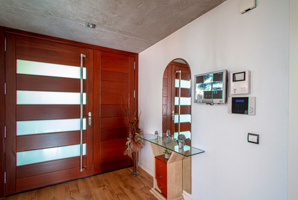- Access the entrance via stairs, leading to a modern and functional interior.
