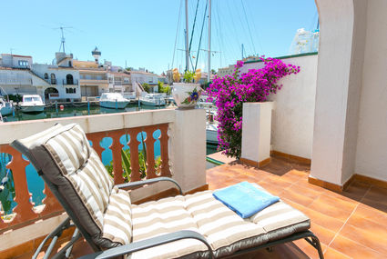 Terraced house "Port Argonautes", 2 storeys. In the district of Port Argonautes 800 m from the centre of Empuriabrava, in a quiet, sunny position, 850 m from the sea, 850 m from the beach, on a main road. Private: terrace, garden furniture, parking at the house. Supermarket 1.5 km, shopping centre 1.5 km, restaurant, bar 300 m, sandy beach "La Rubina" 850 m. Sports harbour 1.4 km, golf course 5 km, tennis 1.5 km, minigolf 800 m, riding stable 3 km, cycle lane 240 m. Nearby attractions: Centro paracaidismo y túnel del viento 3 km, Parque Acuático Aquabrava Roses 6 km, Casino y festival de Peralada 12 km, Museo Dalí a Figueres 15 km, Ruïnes de Empuries 21 km, Monasterio de Sant Pere de Rodes 24 km. Please note: private mooring.Availability