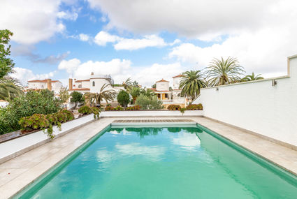 Canal Noguera: Beautiful, cosy single-family house "Bahia", 2 storeys, renovated in 2016. 2.5 km from the centre of Empuriabrava, in a quiet, sunny position, 2.8 km from the sea, directly by the canal. Private: well-kept garden with lawn and trees, swimming pool (8 x 4 m, seasonal availability: 01.Apr. - 30.Oct.) with salt-electrolysis pool-cleaning system. Pergola, terrace, garden furniture, barbecue, parking at the house. Supermarket 400 m, restaurant, bar 500 m, sandy beach "Empuriabrava" 2.5 km. Sports harbour 2.8 km, golf course (12 hole) 8 km, sailing school 2.5 km, tennis 600 m, minigolf 1 km, walking paths from the house 100 m, cycle lane 200 m. Nearby attractions: Parque Acuático Roses 10 km, Museo Dalí Figueres 15 km, Golf Perelada 12 km, Centro Paracaidismo / Túnel del viento 1 km, Ruïnas de St. Martí de Empúries 21 km, Cadaqués 16 m. Please note: groups of teenagers on request only. Private mooring. The keys‘ handover takes place by the agency Interhome.Availability