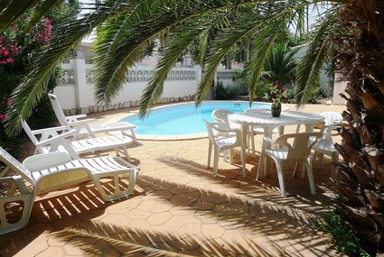 Comfortable house "Maison Elisenda", 2 storeys, built in 2006. In the district of Llobregat 2 km from the centre of Empuriabrava, in a sunny position residential area (villas), 1.5 km from the sea, 1.5 km from the beach. Private: property (fenced) with wildlife garden and flowers, swimming pool kidney shaped (8 x 4 m, 01.06.-30.09.). Terrace (200 m2), garden furniture, single garage. Shop 1 km, supermarket 1 km, shopping centre 3 km, restaurant 1 km, bar 1 km, bus stop 2 km, sandy beach "La Rubina" 2 km. Sports harbour 3 km, golf course 15 km, tennis 500 m, minigolf 1.6 km, riding stable 3 km, cycle lane 4 m. Nearby attractions: Centro paracaidismo y túnel del viento 1 km, Parque Acuático Roses 6 km, Museo Dalí Figueres 15 km, Castillo de Perelada 12 km, Ruïnas de St. Martí de Empúries 21 km, Monasterio de Sant Pere de Rodes 23 km. Please note: main road close by.Availability