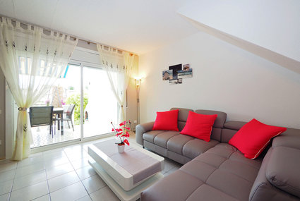 Comfortable and modern furnishings: living/dining room with 1 double sofabed, open-hearth fireplace, dining table, bar, digital TV, flat screen and forced-air heating. Exit to the patio. Kitchen (dishwasher, freezer, electric coffee machine, combination microwave). Sep. WC. Air-conditioning, forced-air heating. Upper floor: 1 room with 2 beds. 1 room with 1 french bed (140 cm, length 190 cm). Exit to the balcony. Shower/WC, double hand-basin. Terrace furniture, barbecue. View of the canal. Facilities: washing machine, iron. Reserved parking (fenced). Please note: suitable for families. Private mooring (extra). TV only ES, FR. HUTG017579