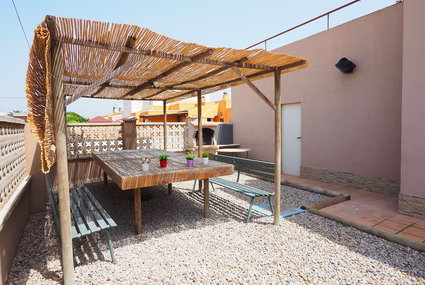 Simple semi-detached house "Puigmal", 2 storeys. In the district of Puigmal 3 km from the centre of Empuriabrava, in a quiet, sunny position residential area (villas), area with little traffic, 3.2 km from the sea, 3 km from the beach, south-west facing position. Private: property (fenced), swimming pool angular (6 x 3 m, 01.05.-30.10.). Arbour, terrace, garden furniture, barbecue, parking at the house. Grocery, supermarket, restaurant, bar 500 m, café 400 m, bus stop 1 km, sandy beach "Empuriabrava" 3 km. Sports harbour 3 km, golf course (18 hole) 14 km, tennis 800 m, minigolf 2 km. Nearby attractions: Aerodromo y túunel de viento 800 m, Parque acuático Roses 3 km, Casino y Festival Perelada 14 km, Museo Dalí Figueres 15 km, Ruinas de Empuries 23 km, Monasterio de Sant Pere de Rodes 21 km.
