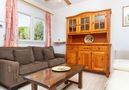 Spacious and bright, practical and cosy furnishings: living/dining room with open-hearth fireplace (only for decoration), satellite TV and international TV channels. Exit to the veranda. 1 room with 2 beds (200 cm, length 90 cm). 1 room with 1 french bed (150 cm, length 90 cm), bath/shower/bidet/WC. 1 room with 1 french bed (135 cm, length 190 cm). Large kitchen (oven, dishwasher, 3 ceramic glass hob hotplates, toaster, kettle, microwave, freezer, electric coffee machine). Exit to the veranda. Shower/WC. Oil heating. Large patio. Terrace furniture, barbecue, deck chairs (5). Facilities: washing machine, iron, hair dryer. Internet (WiFi, free). Garage, height 240 cm, width 400 cm. Please note: suitable for families. Non-smoking house. 1 pet/ dog allowed. TV only ES, FR, DE. HUTG-020958