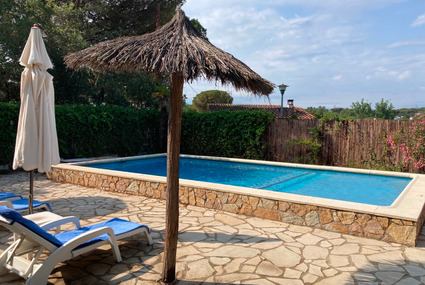 Casa Siete is a serene retreat nestled on a quiet street, offering the perfect escape from the hustle and bustle of daily life. Located within a peaceful urbanization, this **fully detached villa** ensures privacy and tranquility for all its guests. For those traveling by car, rest assured that you can park safely on private property.### Prime LocationSituated just 15,000 meters from the beach, Casa Siete offers easy access to the stunning coastline while maintaining a peaceful ambiance. The villa is conveniently located at street level, with the entrance accessible via short stairs leading to the first floor.### Spacious and Comfortable LivingUpon entering Casa Siete, you'll find a welcoming space that includes a **living room**, an **open kitchen**, a **dining room**, three **bedrooms**, and two **bathrooms**. The interior is designed with a Spanish flair, combining functionality with a light and inviting atmosphere. With a built surface of 160 m² and a sprawling plot of 3000 m², there is ample space for relaxation and recreation.### Outdoor BlissThe villa boasts a **private swimming pool**, located at the side of the property. Accessible via short stairs, the pool area is perfect for soaking up the Spanish sun and enjoying outdoor life. The natural garden surrounding the villa enhances the serene environment, making it a great choice for families with children due to the expansive personal space.### Accommodation DetailsCasa Siete offers comfortable accommodation with three well-appointed bedrooms, ensuring a restful night's sleep for all guests. The two bathrooms are equipped with modern amenities, providing convenience and comfort. The open kitchen and dining area are perfect for preparing and enjoying meals together, while the living room offers a cozy space for relaxation.Whether you're looking for a peaceful getaway or a family-friendly holiday destination, Casa Siete provides the ideal setting for an unforgettable vacation experience. Enjoy the best of Spanish hospitality and the comfort of a private villa.Unfortunately groups of youngsters (average age below or equal to 25) are not allowed in this holiday residence.