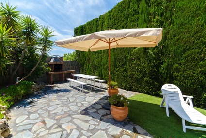 At the front of the villa, a short flight of steps leads you down to the private swimming pool. The swimming-pool area and the steps to it are protected by a gate for the safety of your children. Around the pool, sun loungers allow you to relax both in the sun and in the shade, while the kids will enjoy playing in the pool or on the lawn. The beautifully landscaped garden, terraces and the built-in stone BBQ will make sure that you can enjoy the ultimate family holiday under the Spanish sun!