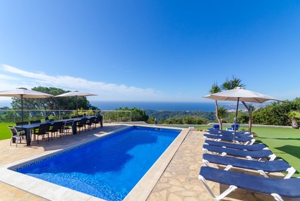 Holiday villa in Lloret de Mar with a private pool, a tennis court and stunning sea views, suitable for 14 people.Availability