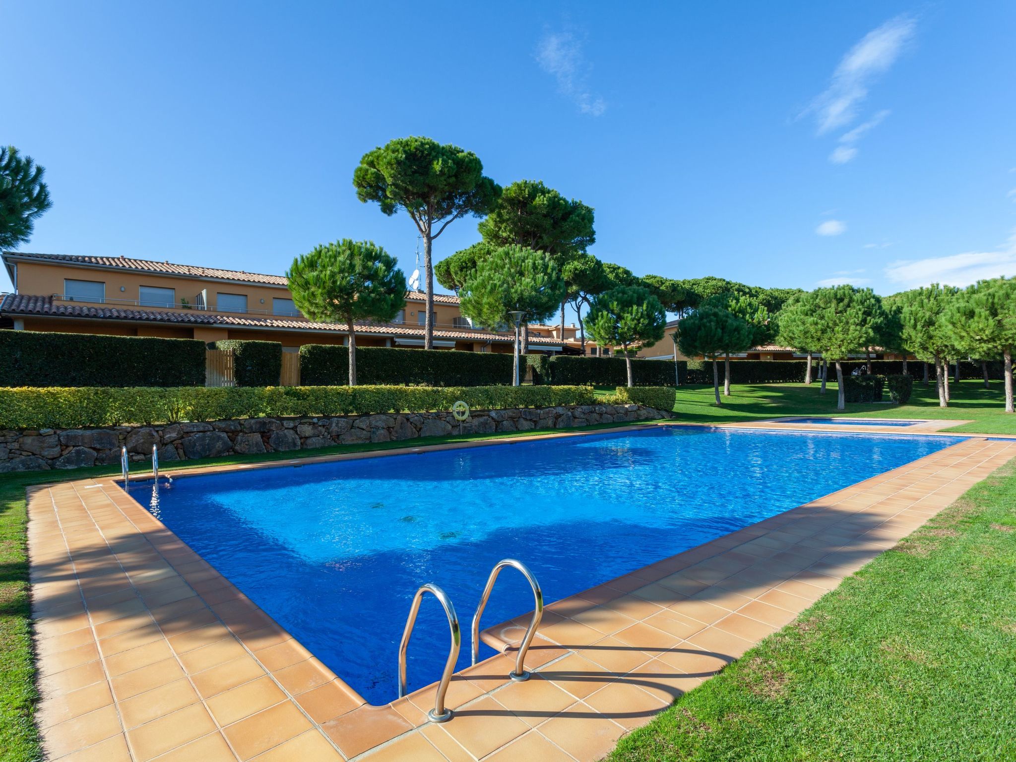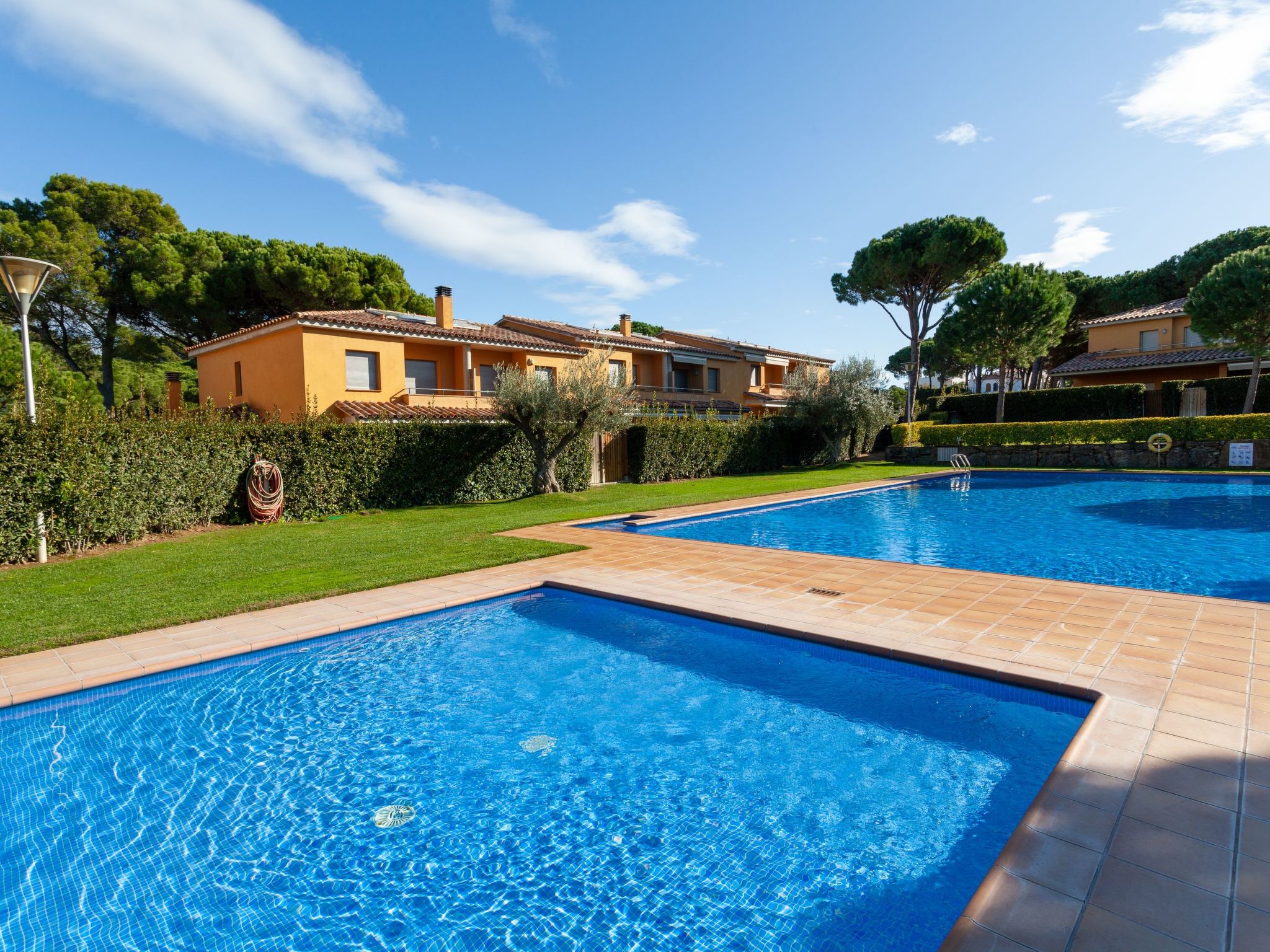 Terraced house "Gavarres Mar". 32 houses in the resort. 800 m from the sea. For shared use: with lawn, natural garden, swimming pool angular (10 x 16 m, depth 90 - 165 cm, 15.05.-16.10.). Children's pool, outdoor shower. Private: garden with lawn. Pergola, garden furniture. Supermarket 700 m, restaurant 800 m, sandy beach 700 m. Golf course 1 km. Nearby attractions: Illes Medes 17 km. Groups of teenagers on request only.Availability
