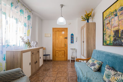 Simple and practical furnishings: living/dining room with 1 sofabed, TV and air conditioning. 1 room with 1 french bed (1 x 150 cm). 1 room with 1 bed (80 cm), 1 sleeping facility (70 cm). Open kitchen (4 hot plates, microwave, freezer). Bath/WC. Electric heating. Small balcony. Balcony furniture. Facilities: washing machine. Internet (WiFi, free). Garage. Please note: non-smokers only. TV only ES.