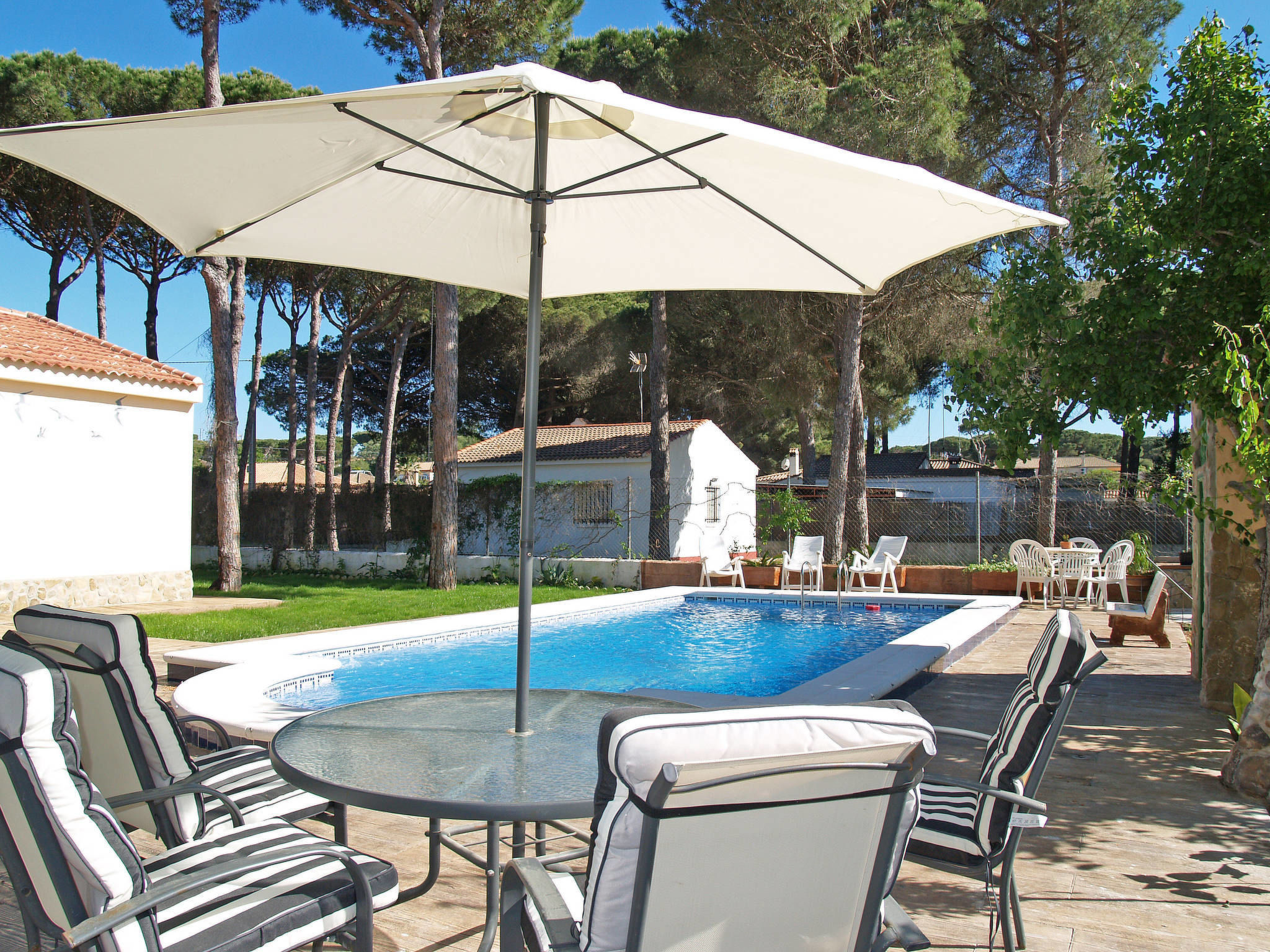 Rustic bungalow "Aljomi". In the district of Los Guisos 5 km from the centre of Chiclana, 15 km from the centre of Conil de la Frontera, in the residential district, 6 km from the sea, 6 km from the beach. Private: property 1'200 m2 (fenced), garden with wildlife garden and trees, swimming pool (8 x 4 m, 01.01.-31.12.). Outdoor shower, pool house with cooking stove, patio, terrace, garden furniture, barbecue, parking (for 3 cars) on the premises. Shop 2.5 km. Please note: car recommended.Availability
