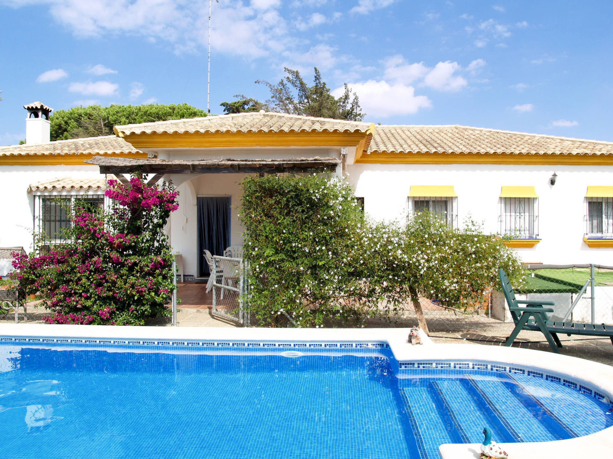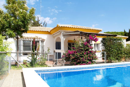 Single-family house "Hanna". 6 km from the centre of Chiclana, 10 km from the centre of Conil de la Frontera, 25 km from the centre of Cadiz, 6 km from the sea, 6 km from the beach. Private: property 1'000 m2 (fenced), lawn and trees, swimming pool (8 x 4 m, seasonal availability: 01.Jan. - 31.Dec.). Outdoor shower, parking on the premises. Shop 1 km, bus stop 3 km, railway station 30 km. Please note: car recommended. The owner does not accept any youth groups. Neighbourhood highly sensitive to noise. Quietness and good behaviour expected.Availability