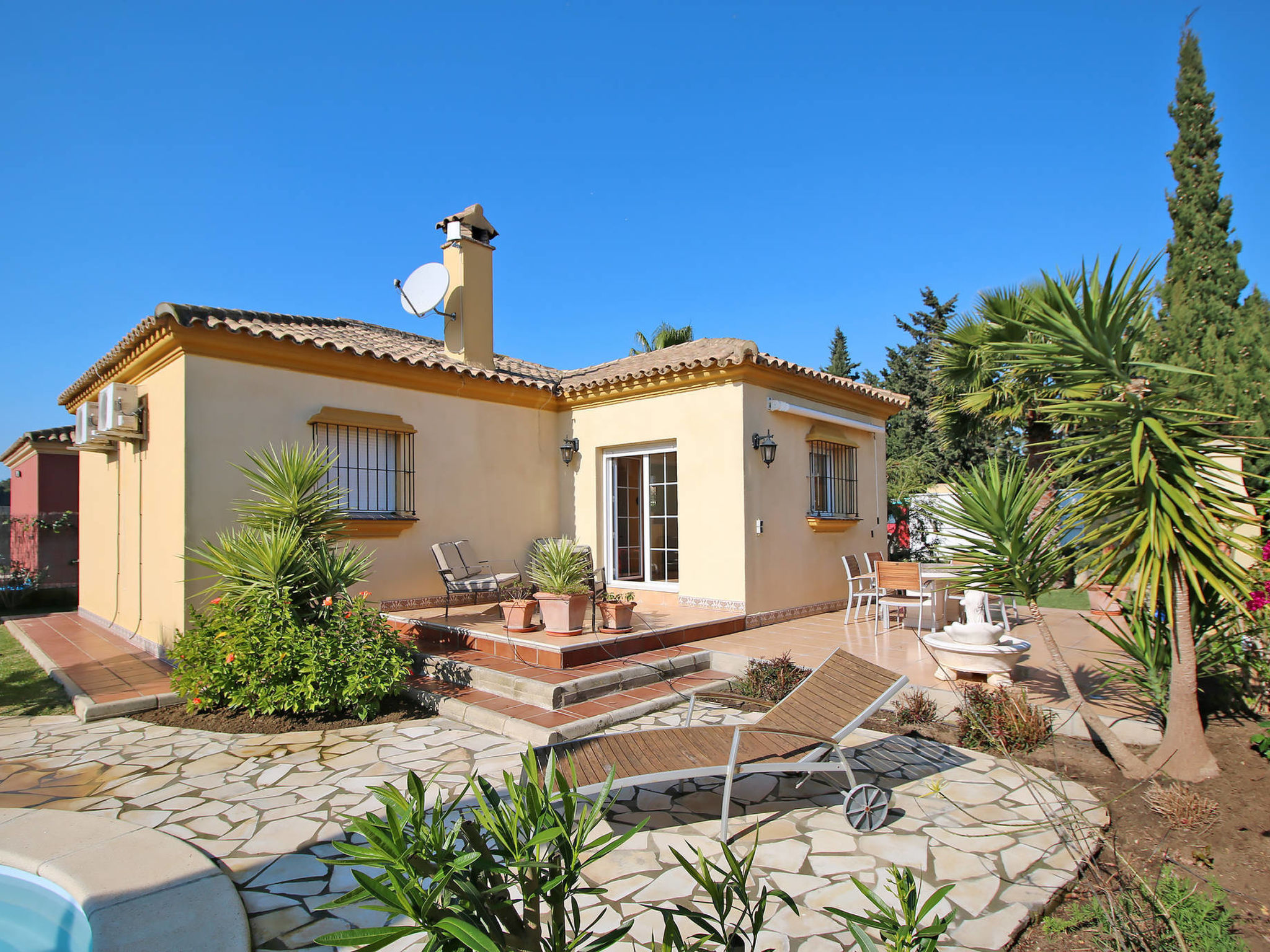 Beautiful single-family house "Angela". 6 km from the centre of Chiclana de la Frontera, 12 km from the centre of Conil de la Frontera, 32 km from the centre of Cádiz, 6 km from the sea, 6 km from the beach. Private: property 430 m2 (fenced), garden with lawn and trees, swimming pool round (4 m diameter, 01.01.-31.12.). Outdoor shower, terrace, garden furniture, barbecue, parking (for 2 cars) on the premises. Shop 500 m. Please note: car recommended.Availability