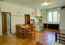 Kitchen with 4 hot plates, micro wave, oven, grill, dining table, dinette, dishwasher and fridge.