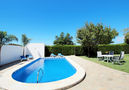 Situation: suburbian area. Access/parking: garage. Estate (private use): approx. 1000 m², closed plot (fence, hedge), lawn, flagged floor. Outdoor facilities(private use): terrace (roofed, sun-blind), reserved open space, furnishing provided, brick barbecue. Pool (private use): 8.0 x 3.5 m, open throughout the entire season. Pool area: tiled, 4 sun loungers, sunshade, external shower. ● Distances: Center Conil de la Frontera in approx. 1 km. Next shopping possibility in approx. 1 km. Indoor public swimming pool in approx. 300 m. Golf course in approx. 5 km.Availability