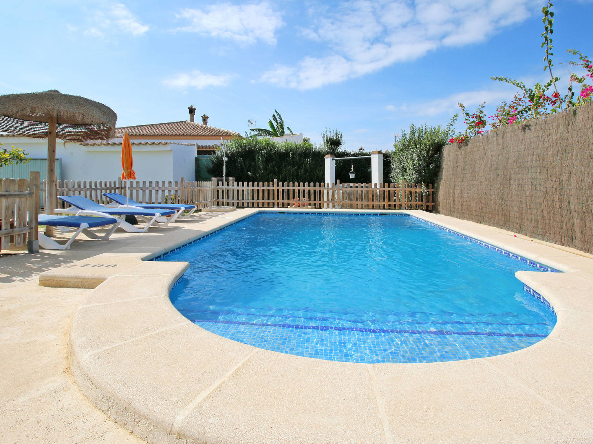 Bungalow "Joaquina II+III". In the district of Roche Viejo 4 km from the centre of Conil de la Frontera, 3 km from the sea, 3 km from the beach. Private: property 500 m2 (fenced), garden with lawn, swimming pool fenced (7 x 3 m, 01.03.-15.11.). Parking on the premises. Shop 4 km, restaurant 1 km. Please note: car recommended.