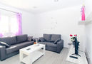 Bright, modern furnishings: living/dining room with dining table, satellite TV and international TV channels. 1 room with 1 french bed (135 cm, length 190 cm), electric heater. 1 room with 2 beds (80 cm, length 190 cm), electric heater. Open kitchen (oven, 3 ceramic glass hob hotplates, toaster, microwave, freezer, electric coffee machine). Shower/WC. Terrace roofed. Balcony furniture, deck chairs (2). Facilities: washing machine, iron. Internet (WiFi, free).