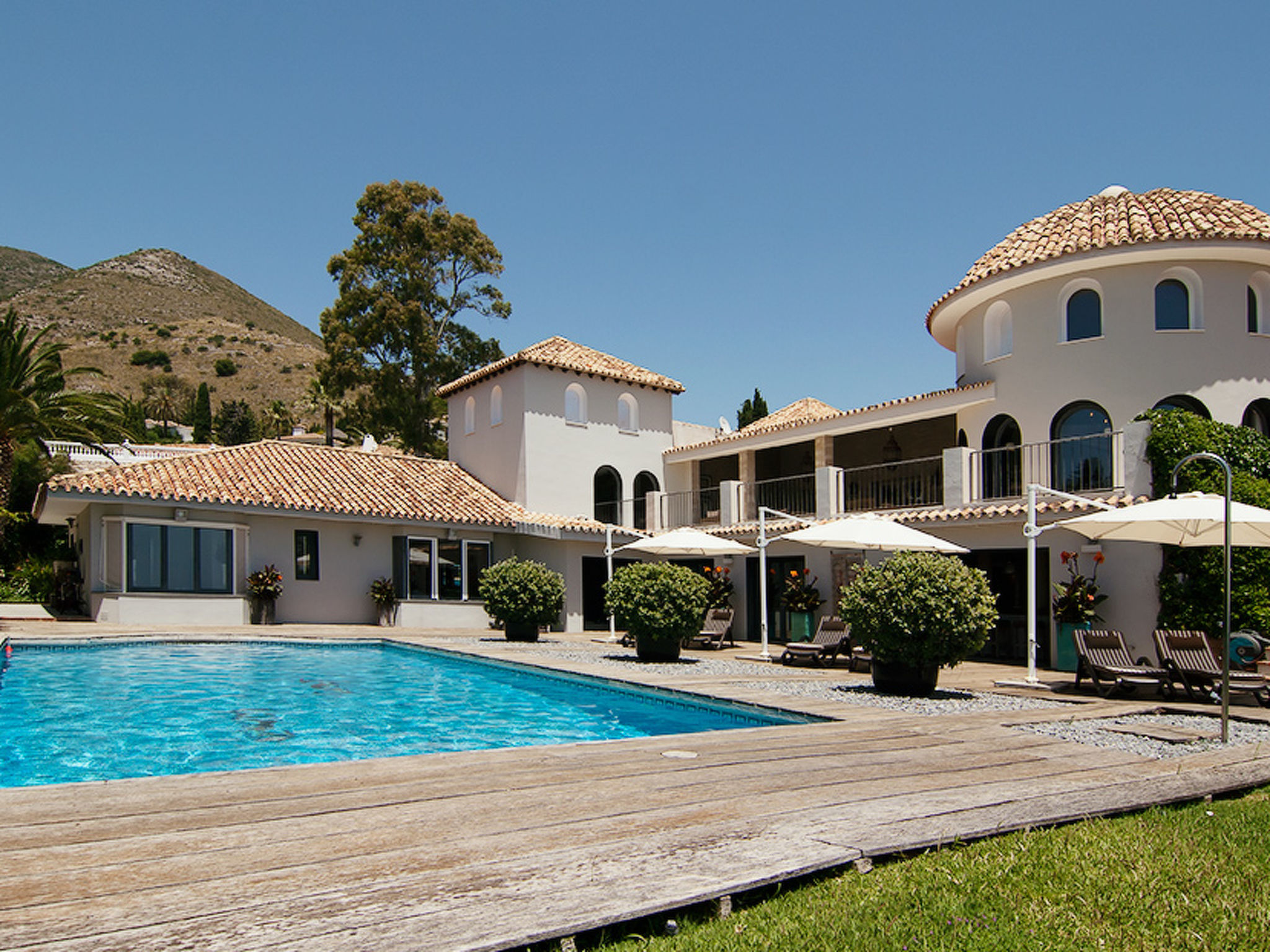 Capellania: Large, luxurious villa "Villa Anahi", 2 storeys. In the resort Benalmadena, in a quiet, sunny position residential area (villas), 1.5 km from the sea, 1.5 km from the beach. Private: property, garden with lawn, swimming pool angular, heated (01.01.-31.12.). Shower/WC in the pool area, patio, arbour, pergola, garden furniture, barbecue. In the house: WiFi, sauna, billiard table, central heating system, air conditioning. Parking on the premises. Supermarket, restaurant, bar 700 m, sandy beach 1.5 km. Sports harbour 4 km, marina 4 km, golf course 3 km, tennis, sports centre 800 m, cable car 4 km, gondola lift 4 km. Nearby attractions: Sea Live, Selwoo marina, Mariposario, Tivoli. Please note: suitable for families.Availability