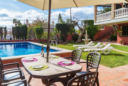 Chilches Costa: Large, cosy single-family house "Nasas 2", 2 storeys. Outside the resort, 2 km from the centre of Chilches, 100 m from the sea. Private: with lawn, swimming pool angular (9 x 5 m, 01.01.-31.12.). Garden furniture, barbecue. In the house: WiFi, washing machine. Parking. Supermarket 1 km, shopping centre 12 km, restaurant, bar, bus stop 100 m.Availability