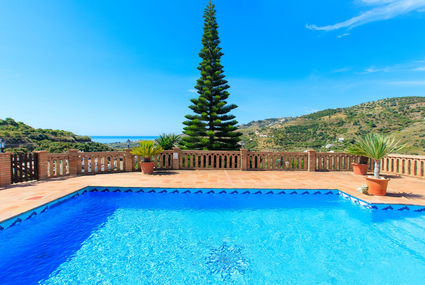 Frigilia 4 km from Nerja: Beautiful, comfortable house "Lourdes". On the outskirts, 4 km from the centre of Nerja, in a sunny position residential area (villas), 4.5 km from the sea, 4.5 km from the beach, south facing position. Private: courtyard, swimming pool angular (7 x 4 m, depth 145 - 180 cm, seasonal availability: 01.Jan. - 31.Dec.). Outdoor shower. In the house: air conditioning, washing machine. Parking (for 2 cars). Shop 4 km, shopping centre 24 km, restaurant 2.5 km, bar 4 km, bakery 4 km, pedestrian zone 4 km, bicycle rental 4 km, tram 16.3 km, bus stop "Parada autobus de Frigiliana a Nerja Tablazos" 1.2 km, railway station "Atarazanas" 46.5 km, sandy beach "Burriana" 4.5 km, diving center 4.5 km. Sports harbour 24 km, marina 21 km, golf course (18 hole) 21 km, surf school 21 km, tennis 4 km. Nearby attractions: Frigiliana, Nerja, Cuevas de Nerja, Maro, Malaga. Well-known ski regions can easily be reached: Sierra Nevada. Well-known lakes can easily be reached: La Viñuela. Hiking paths: Sierra Almijara, Sierra Tejeda. Please note: car recommended. Baby equipment (included). Groups of teenagers on request only. Loading and unloading of baggage is possible at the holiday house.Availability