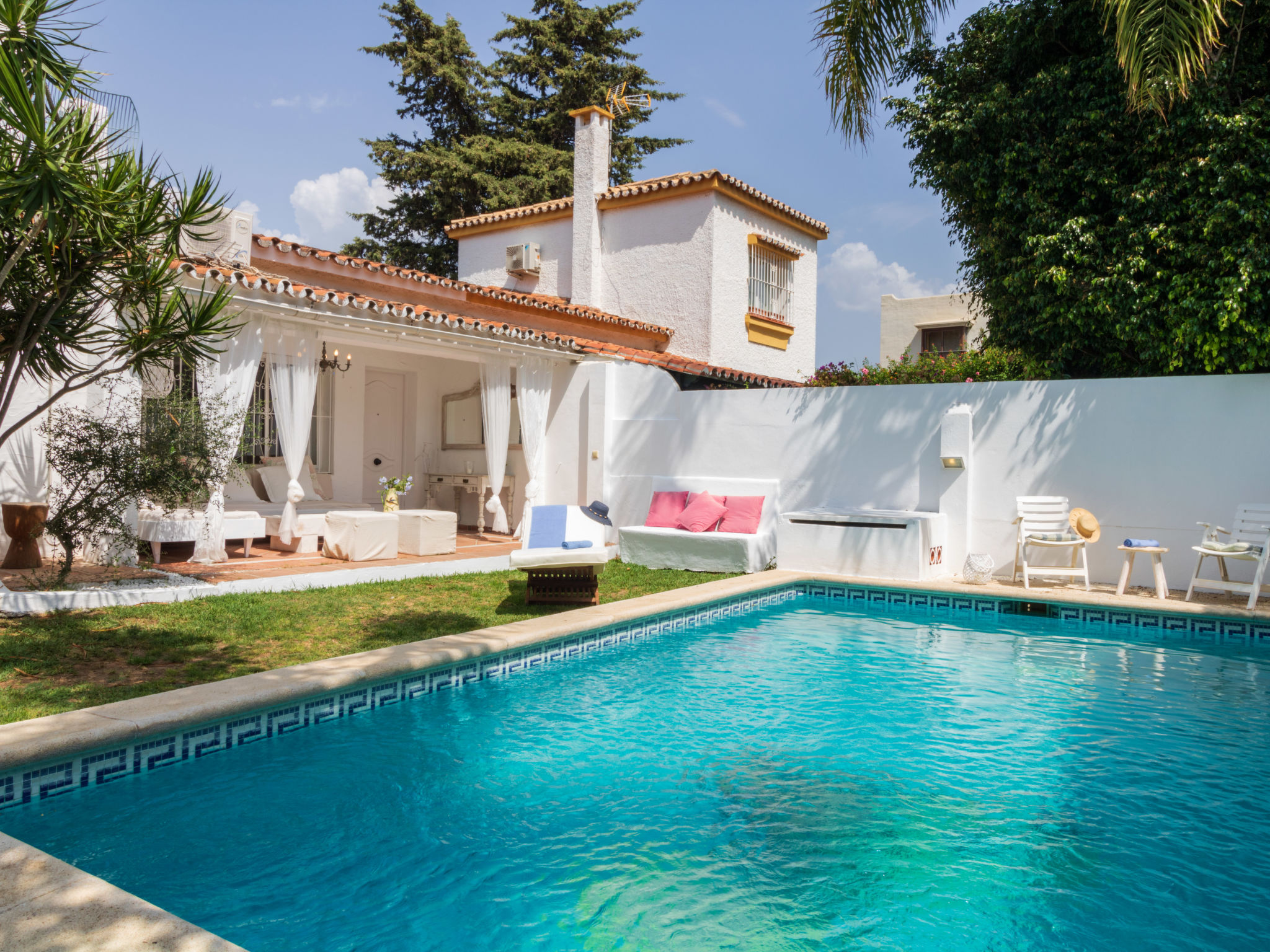 Beautiful, cosy house "Adelfas". In the resort 800 m from the centre of San Pedro de Alcantara, 3 km from the centre of Puerto Banus, 8 km from the centre of Marbella, in a quiet position residential area (villas), 400 m from the sea, 400 m from the beach, south facing position. Private: property (fenced), beautiful garden to relax, swimming pool (01.01.-31.12.). Patio, barbecue. In the house: WiFi, air conditioning, washing machine. Parking. Supermarket 500 m, shopping centre 3 km, restaurant, bar 250 m, bakery 300 m, café 250 m, pedestrian zone, pub garden, sandy beach 300 m. Golf course (18 hole) 3 km. Object suitable for 4 adults + 2 children. Neighbourhood highly sensitive to noise. Quietness and good behaviour expected.
