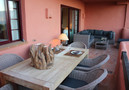 When you enter the property you find the living and kitchen area straight forward and right. The kitchen is fully equipped and a laundry room with washing machine and tumble dryer is available. From the living you have direct access to the terrace where your morning coffee is complemented with fantastic views on the spacious lounging area.