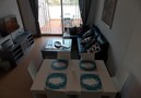 The lounge leads to the terrace, which is south west facing and overlooks the fantastic, well kept, tropical community gardens, which has a rear entrence/exit which allows a short cut to the beach ! There is a dining table and chairs and sun loungers on the terrace. There is a large community shared pool.
