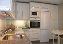 A fully equipped kitchen with dishwasher, oven, microwave, refrigerator, and washing machine