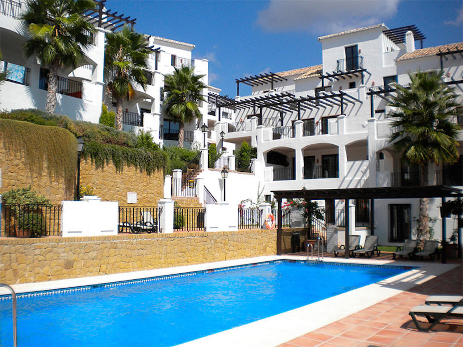 Sun lounges are provided by the urbanization at the communal pool area.