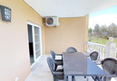 The apartment is newly furnished with simplicity, the kitchen is roomy and you can see into the living room, which makes a nice atmosphere. The living room has access to the terrace and garden. The terrace consists of a large dining table and from the terrace, you have a view of the golf course, which is really beautiful.