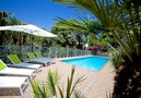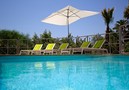 From the grand environmental combination of living with a biofuel burner ‘fire place’, dining and kitchen, there is direct access through large sliding doors to a covered terrace with lounge area, dining area for 8 (+2) and large gas BBQ. From this 70m2 terrace area a staircase of 10 steps down guides you to the pool area with big pool of 11 * 3.75 m with depth from 0.50 to 2.50 m. There are 10 sun lounges available at the property.