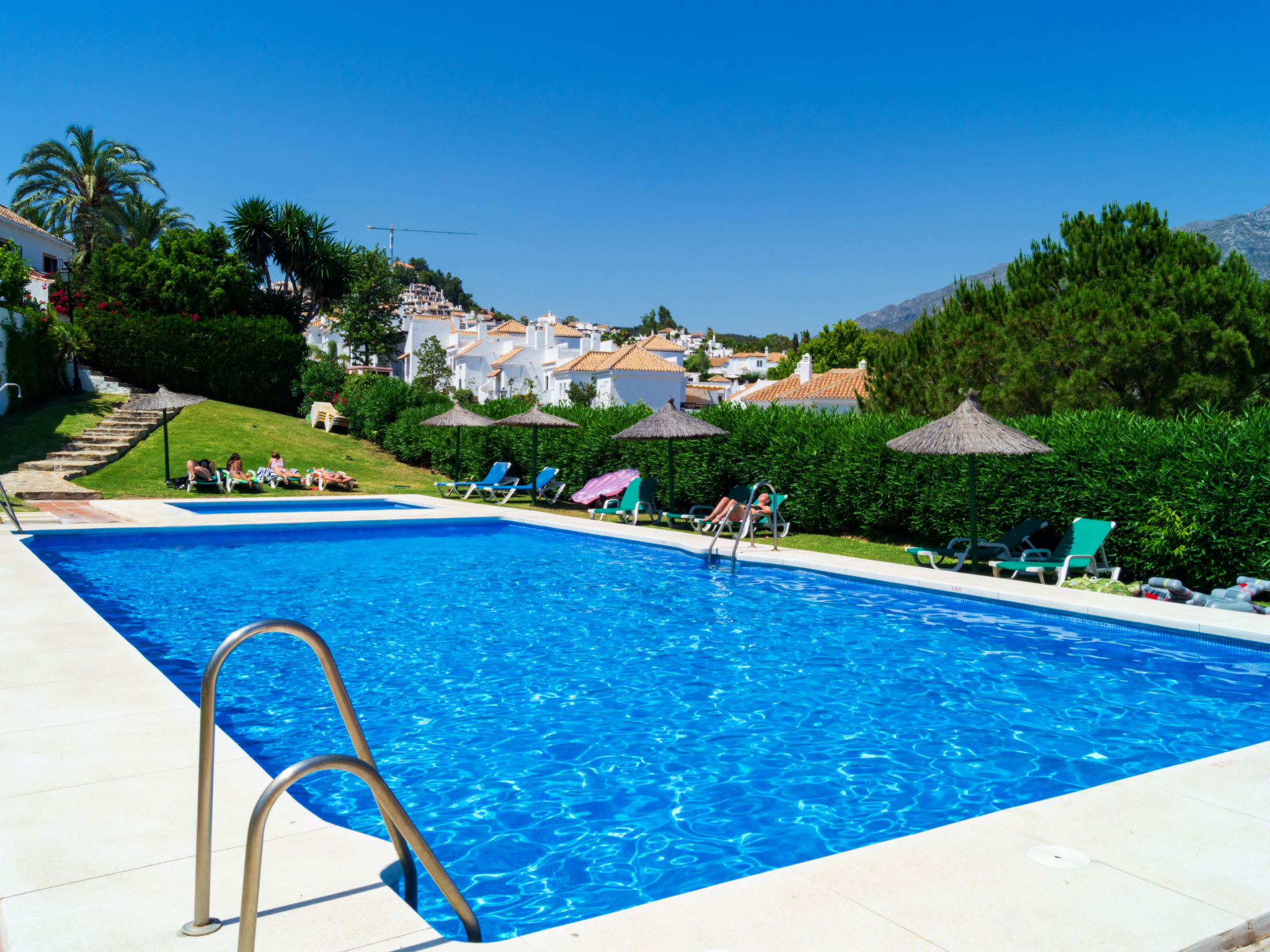 Modern, beautiful apartment block "El Naranjal", 2 storeys. In the district Nueva Andalucia, 5 km from the sea, 5 km from the beach, east facing position. For shared use: beautiful garden to relax, swimming pool (01.01.-31.12.). Outdoor shower, garden furniture. In the complex: central heating system, air conditioning. Parking at the house. Golf course (18 hole) 3 km. Please note: car recommended. Object suitable for 4 adults.Availability