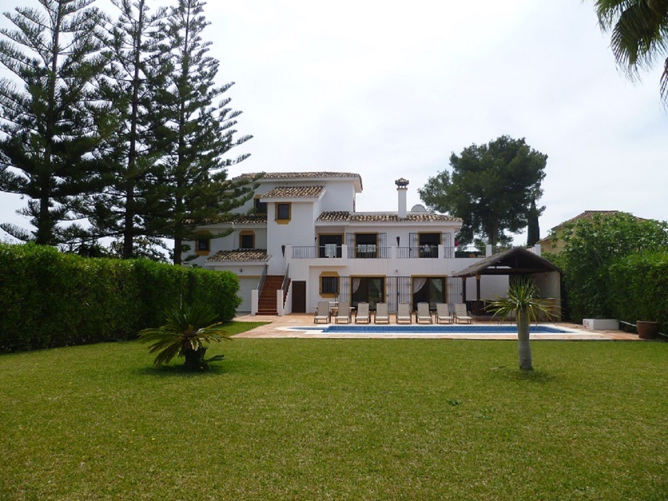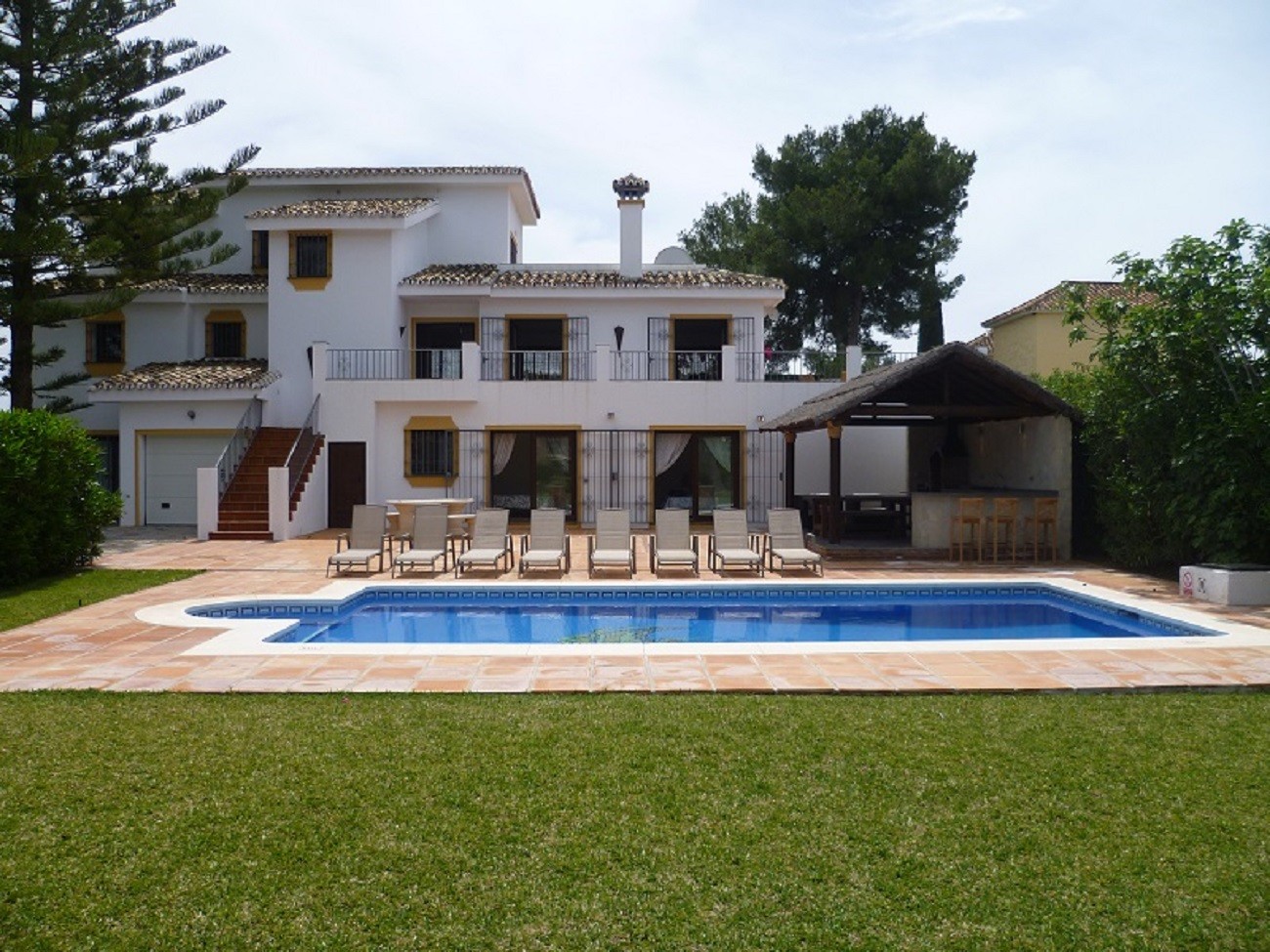 This grand villa is located in the suburb El Rosario located 5 km west of Marbella. The area of El Rosario is cosy and a supermarket, some restaurants, hairdresser, bakery and few small shops are within a distance of approximately 500 meters. The Marbella Golf & Country Club is a bit more than 2 km.