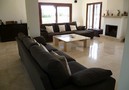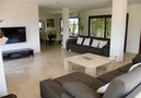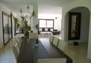 The living and kitchen level of the villa is located one level up the stairs. When entering the villa into the hallway you find a guest toilet and straight forward a very spacious living to your right and a dining area for 8 persons to your left.