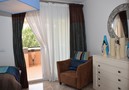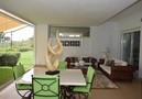 The living is very spacious and contains a dining area for 6 and a sofa group an open fireplace and through large sliding patio doors which give access onto the enormous covered terrace with removable glass curtains to create an open space towards the garden. The property has a garden with views to the greenery of the urbanization.