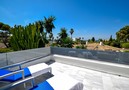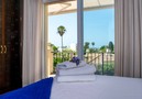 Very spacious master bedroom (4) with amazing views to the Mediterranean Sea. It has built in wardrobes and an ensuite bathroom to dream of!!!! This bathroom consist of a large bathtub, double sink, a bidet & toilet and a shower with enough space for 2 persons. Through sliding doors you have access to your private terrace with 2 sun lounges and dining table for 4 persons.
