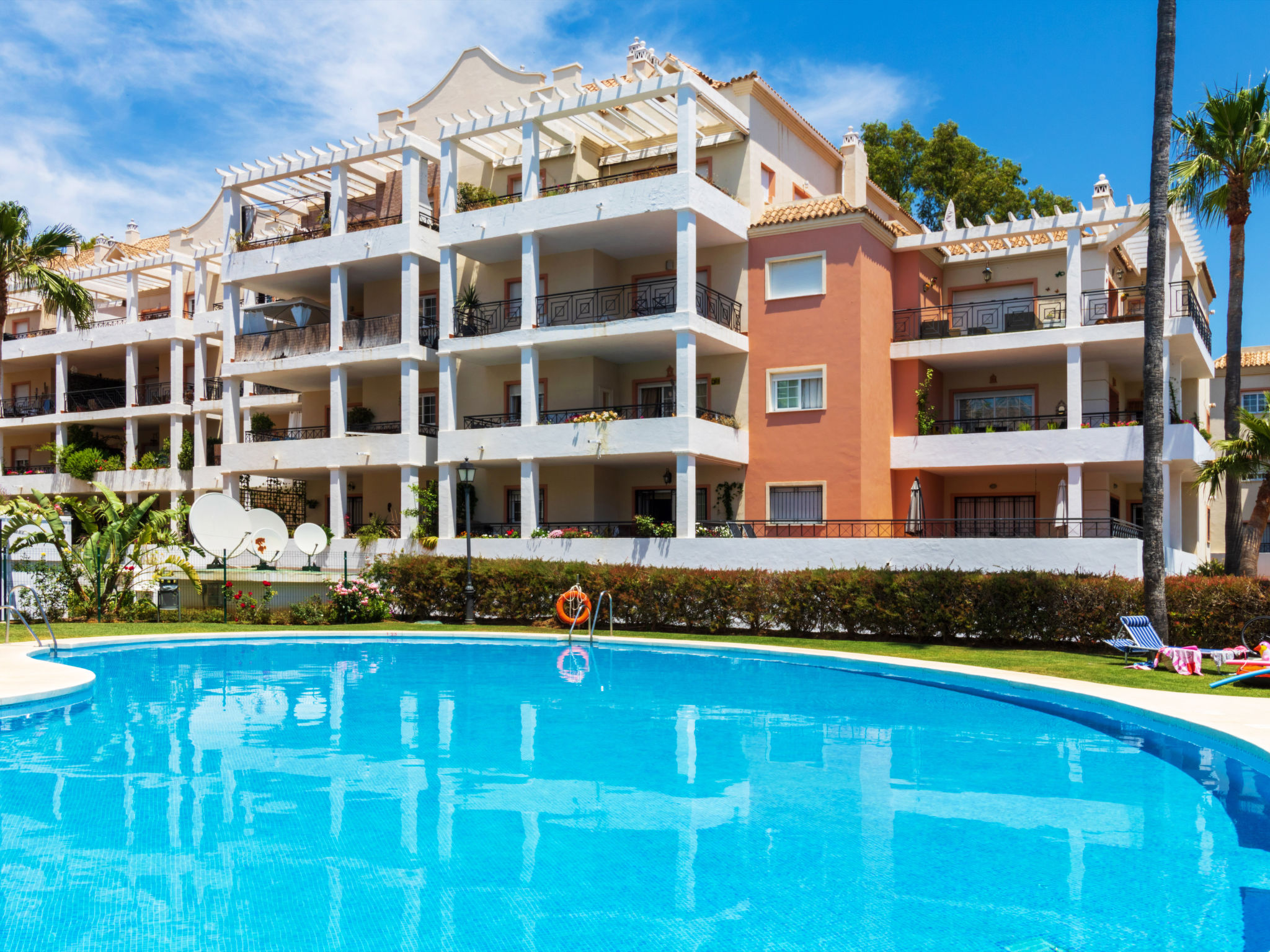 Apartment block "River Garden". In a quiet, sunny position, 3.5 km from the sea, 3.5 km from the beach. For shared use: property (fenced), garden with lawn, swimming pool (01.01.-31.12.). Shower/WC in the pool area. Shop 1 km, supermarket 2 km, restaurant 1 km, sandy beach 3.5 km. Sports harbour 3.5 km, golf course (18 hole) 1 km. 24hr guard. Neighbourhood highly sensitive to noise. Quietness and good behaviour expected.