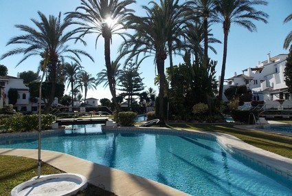 The house stands on a corner plot and offers a large terrace and garden for relaxing and for dining al fresco. It has recently been modernised and refurbished. It offers the closeness of the activity of Puerto Banus whilst being nestled in tropical gardens in the heart of Nueva Andalucia, offering peace and quiet just a stone’s throw from where it’s all happening. The development is within a gated community which boasts four separate swimming pools. The house has five bedrooms, four have double beds and the fifth has a single and room for folding bed.
