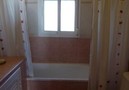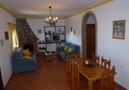 The interior this lovely two bedroom villa is built on one level. From the porch is accessedliving room and kitchenette. The lounge has two sofas and table and chairs for 6. TV, Satellite and DVD are provided for entertainment.