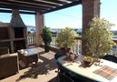 The porch is furnished with tables and chairs, a nice wicker chair and coffee table andbarbecue available. From here stairs lead us to the large pool area with lawned garden.