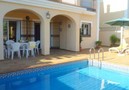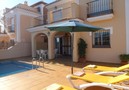 At street level, accessed through security gates, there is a drive way and play area leading to a large garage, which has an electrically operated door. Inside is the utility area with a washing machine. The main living area on the first floor can be reached by internal stairs from the garage or external stairs from the street. The first level comprises a spacious well furnished lounge / dining room, with feature enclosed fireplace and comfortable sofas, a separate fitted kitchen, having stainless steel appliances. Stairs from the hall lead to the upper level, having a master double bedroom with en- suite shower room and balcony, two twin bedrooms, and a superb Jacuzzi family bathroom. The modern style villa has been furnished and equipped to a high standard throughout. Entertainment is provided by Satellite TV and a music system. For improved security the villa is fitted with security doors and roller shutters.