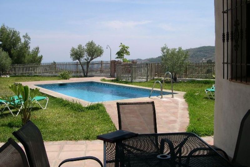 Villa de 3 dormitorios, 3 baños, barbacoa, jardín, piscina privada con maravillosas vistas al mar y la montaña. Situada entre los pueblos de Nerja y Frigiliana.