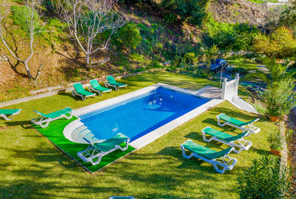 Villa Eucalipto 4 km from Torrox Costa: Large, rustic 2-family house "Villa Eucalipto", surrounded by trees and fields. On the outskirts, 4 km from the centre of Torrox Costa, 2 km from the centre of Torrox pueblo, in a quiet position residential area (villas), 4 km from the sea, 4 km from the beach. Private: terraced garden, natural garden 1'000 m2 (fenced), swimming pool angular (10 x 5 m, depth 1 - depth 2 cm, 01.01.-31.12.). Outdoor shower, barbecue (swing). In the house: internet access, WiFi, air conditioning. Parking (for 4 cars) at the house. Shop 2 km, grocery 2 km, supermarket 2 km, shopping centre 18 km, restaurant 2 km, bar 2 km, bakery 2 km, café 2 km, pedestrian zone 2 km, pub garden 2 km, bus stop "Torrox Pueblo" 2 km, railway station "Malaga" 50 km, sandy beach "Torrox Costa" 4 km. Sports harbour 16 km, marina 16 km, golf course (18 hole) 16 km, surf school 18 km, sailing school 16 km, tennis 12 km, riding stable 12 km. Nearby attractions: Nerja, Frigiliana, Competa, Torre del Mar, Malaga, Granada. Well-known ski regions can easily be reached: Sierra Nevada. Well-known lakes can easily be reached: Pantano la Viñuela. Hiking paths: Sierra Tejeda y Sierra Almijara. Please note: car recommended. Baby equipment. Groups of teenagers on request only. Loading and unloading of baggage is possible at the holiday house.Availability