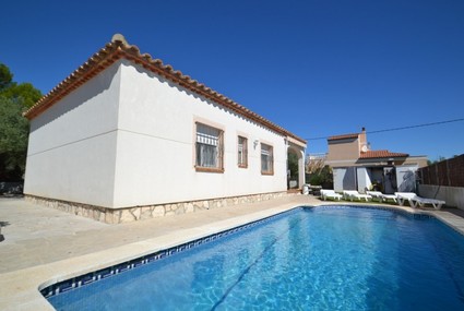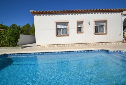 Cheap rental villa with 3 bedrooms, private swimmingpool and garden in a quiet residential area "Las Tres Calas". Outdoor shower, deckchairs and barbecue.