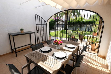 La Llosa 1 km from Cambrils: Cosy, comfortable semi-detached house "Aquari". In the resort 1 km from the centre of Cambrils, in a quiet, sunny position, 300 m from the sea, 300 m from the beach. Private: beautiful, well-kept garden (fenced) with lawn. Terrace, garden furniture, barbecue, parking (for 2 cars) at the house. Shop 100 m, supermarket, restaurant 400 m. Golf course 3 km. Nearby attractions: Portaventura 6 km, Aquopolis 8 km, spa Aquum 8 km, karting 6 km.Availability