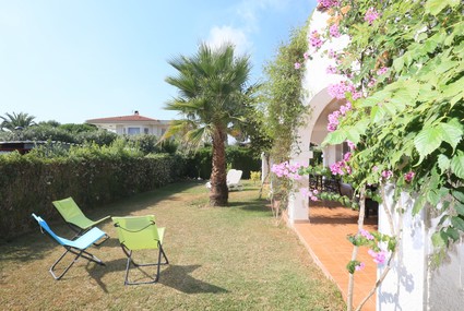 The highlight of this house is undoubtedly its impressive garden plot. Surrounded by palm trees and lush plants, the private garden offers a paradisiacal setting for your vacation. Relax on the sun loungers under the Mediterranean sun or enjoy an outdoor meal in the dining area, equipped with a large table, relaxing chairs, and a barbecue for your summer evenings.