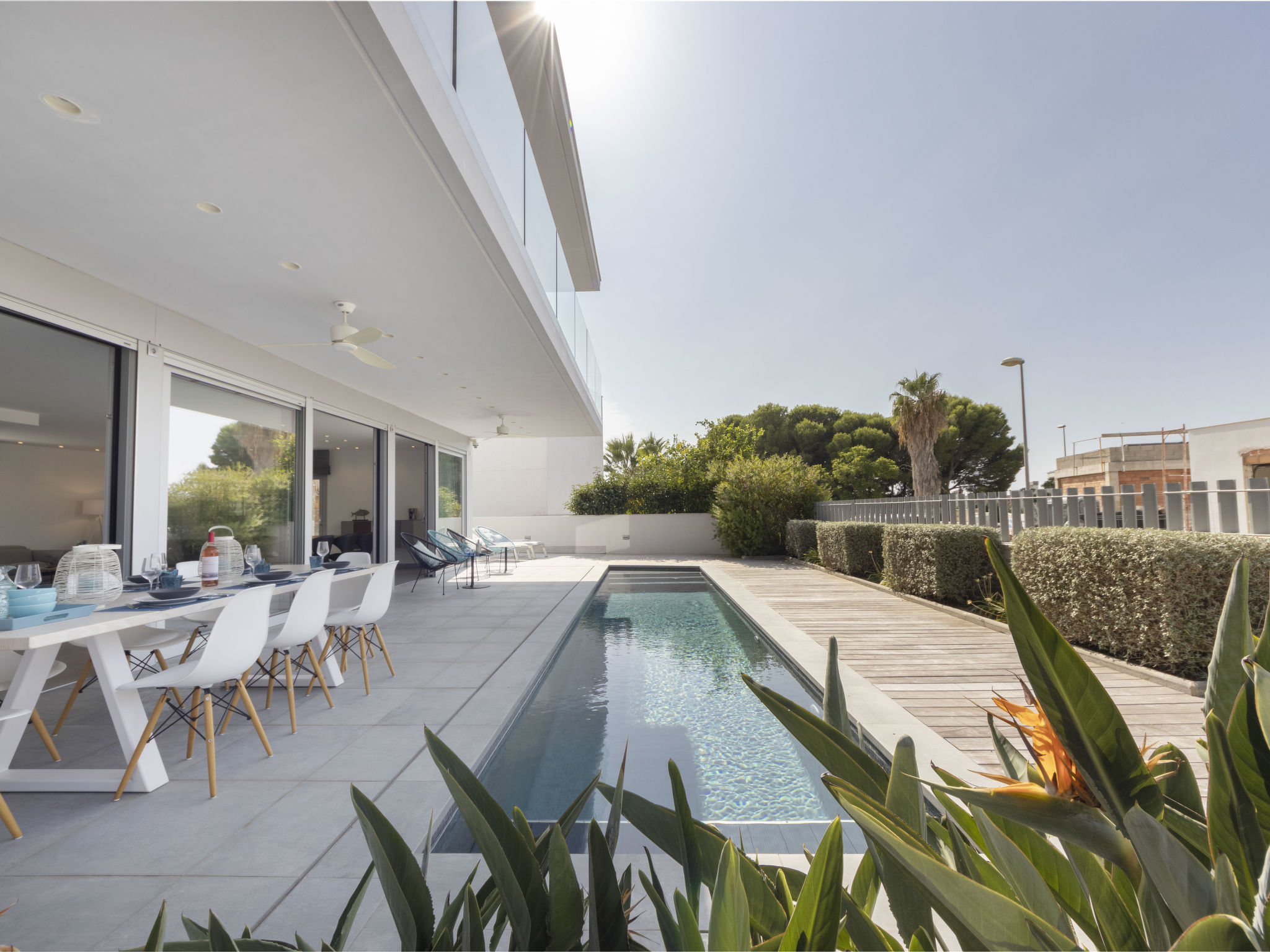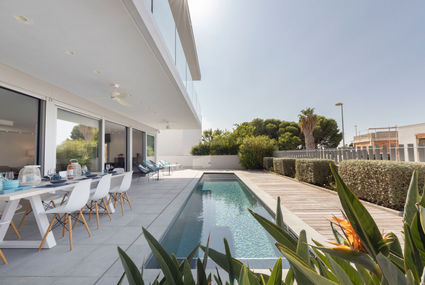Cambrils: Pool heating has an extra cost of 100€/week very modern, beautiful villa "Chamizo", 2 storeys, built in 2016. In a quiet, sunny position residential area (villas), 300 m from the sea, 300 m from the beach. Private: well-kept garden (fenced) 250 m2, wildlife garden and trees, swimming pool angular, heated (2 x 10 m, depth 148 - 158 cm, 01.01.-31.12.) with internal staircase and salt-electrolysis pool-cleaning system. Outdoor shower, terrace, garden furniture, parking at the house, public parking on the road. Grocery 800 m, supermarket 2.3 km, restaurant, bar 500 m, bakery 600 m, pedestrian zone 200 m, bicycle rental 3 km, railway station "Cambrils" 3 km. Sports harbour 3 km, golf course (18 hole) 12 km, surf school, sailing school 600 m, riding stable 9 km. Nearby attractions: Port Aventura / Ferrari Land 16 km, Aquopolis 20 km, Aquum Spa 20 km, Jumpland 5 km. Hiking paths: La Mussara 45 km. Please note: suitable for families. The owner does not accept any youth groups. Neighbourhood highly sensitive to noise. Quietness and good behaviour expected.Availability