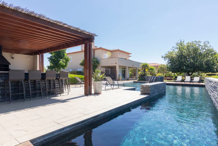 Aigüesverds 9 km from Cambrils: Very large, luxurious villa "Can Roca", 2 storeys. Outside the resort, 3 km from the centre of Reus, in the district Les Palemeres d'Aigüesverds, in a quiet position residential area (villas), area with little traffic, 9 km from the sea, 9 km from the beach, on the golf course, north-west facing position. For shared use: tennis (extra), table tennis, basketball, children's playground (slide, swing). Private: large, beautiful garden, swimming pool angular (90 m2, depth 100 - 180 cm, seasonal availability: 01.Jun.-30.Sep.) with internal staircase. Pool maintenance by the owner/gardener. In the complex: restaurant, bar. Public parking on the road. Grocery 3 km, supermarket 3 km, shopping centre 7 km, restaurant, bar, café 600 m, pedestrian zone 3 km, bus stop "Reus" 3 km, railway station "Reus" 7 km. Sports harbour 12 km, golf course (18 hole) 25 m, surf school 12 km, sailing school 12 km, tennis 600 m, riding stable 3 km, cycle lane 100 m. Nearby attractions: Port Aventura 10 km, Aquum Spa 12 km. Hiking paths: La Mussara 40 km. Please note: car recommended. Baby equipment on request. Object suitable for 6 adults. The owner does not accept any groups. The owner does not accept any youth groups. Loading and unloading of baggage is possible at the holiday house. 24hr guard. Airfield close by. Neighbourhood highly sensitive to noise. Quietness and good behaviour expected. Parties and music are prohibited all day long. This refers to the whole house as well as exteriors like garden and pool ,Located first line in the golf court Aigüesverds.Availability